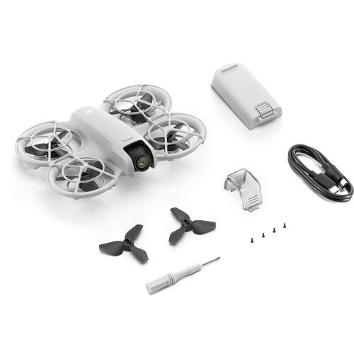 Mixing beginner-friendly operation with pro-style quality, the DJI Neo Drone (No Remote) offers a creative and fun alternative to a selfie stick or tripod. Incredibly lightweight at only 4.8 oz, the palm-sized Neo can take off from and land onto your outstretched hand. In the air, the Neo’s 1-axis camera can capture selfies and sweeping vistas at 4K30 resolution with its 1/2″ sensor. Control it with the DJI Fly app on your phone or with your voice. To ensure solid, pro-style performance, DJI equipped the Neo with AI-based subject tracking, RockSteady and Horizon Balancing stabilization, and six different QuickShots automatic shooting modes. The Neo now makes it easier than ever to achieve a new perspective on your personal and professional content.