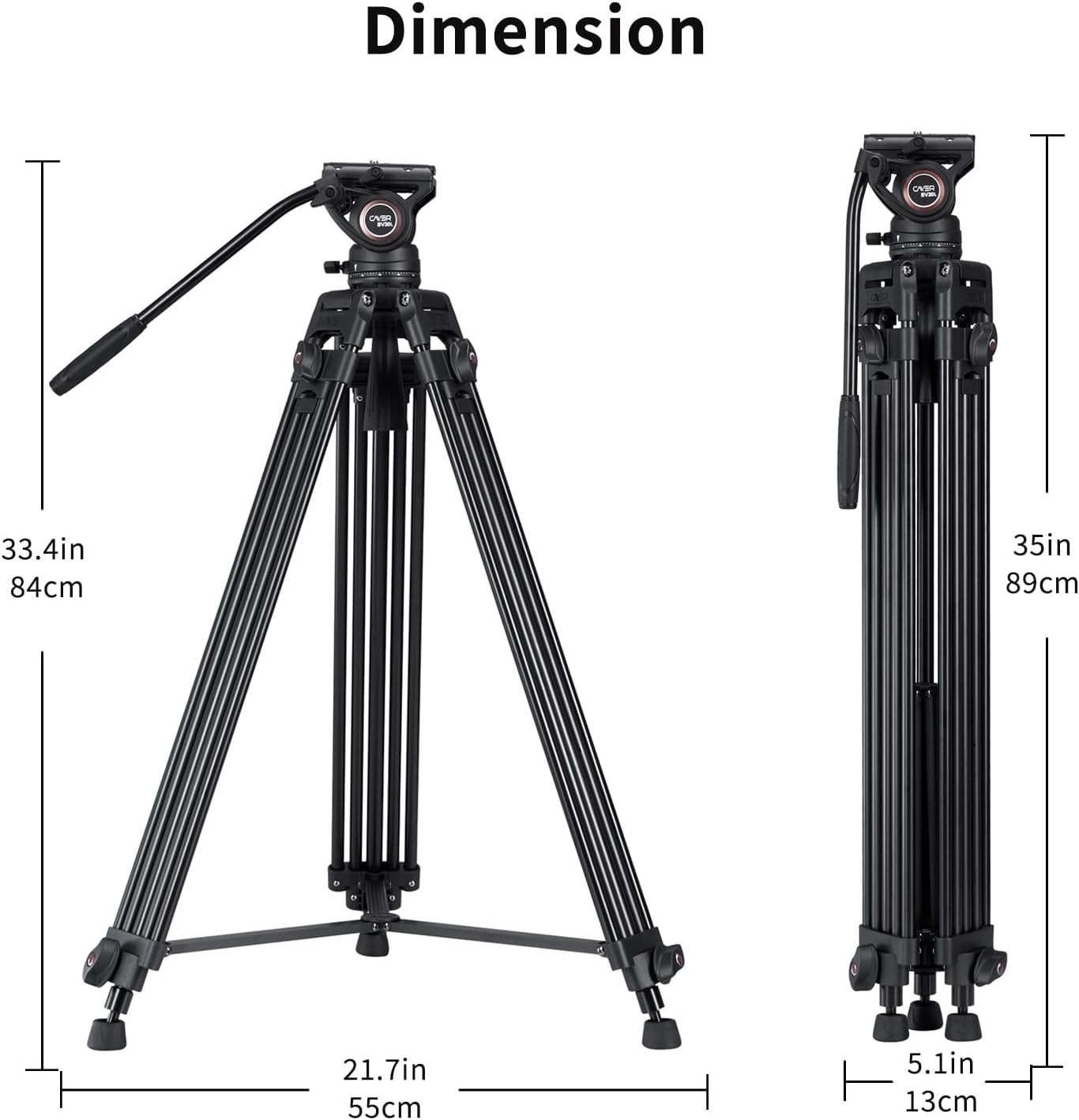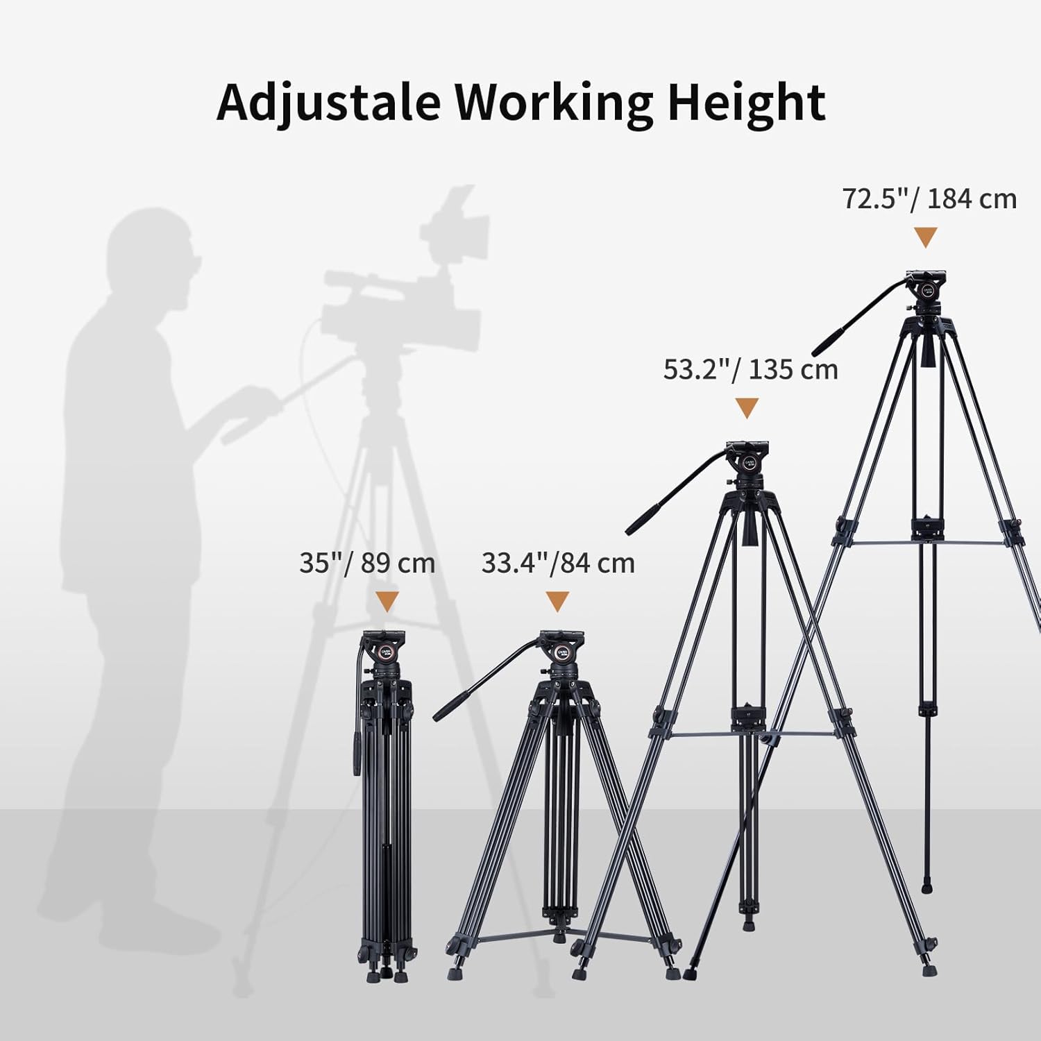 • 【Stable & Adjustable Design】: Heavy-duty twin tube tripod legs with a mid-spreader provide stability. Height adjusts from 33.4″ to 72.5″, and the fluid head tripod folds to 35″ for easy transport in the included carrying bag.