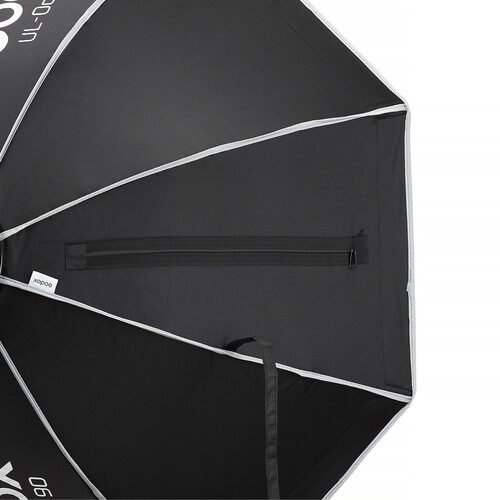 The umbrella-style design allows you to set it up and break it down quickly. The softbox opens as easily as an umbrella and closes just as quickly. A side zipper allows you to access and deploy the softbox without removing the included white inner baffle and outer diffuser.