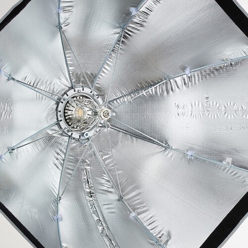 The reflective silver interior maximizes the output while evenly distributing the light. The softbox is offered with a removable grid that eliminates spill light and provides the necessary directional control for selective lighting.