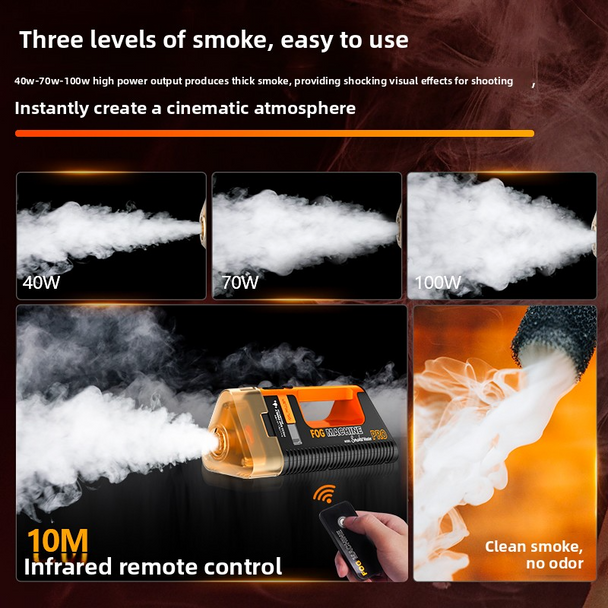 - Smoke output: The amount of smoke produced by Smoke Master PRO in 1 minute can cover 20 CBM. (Minimum power 40W)